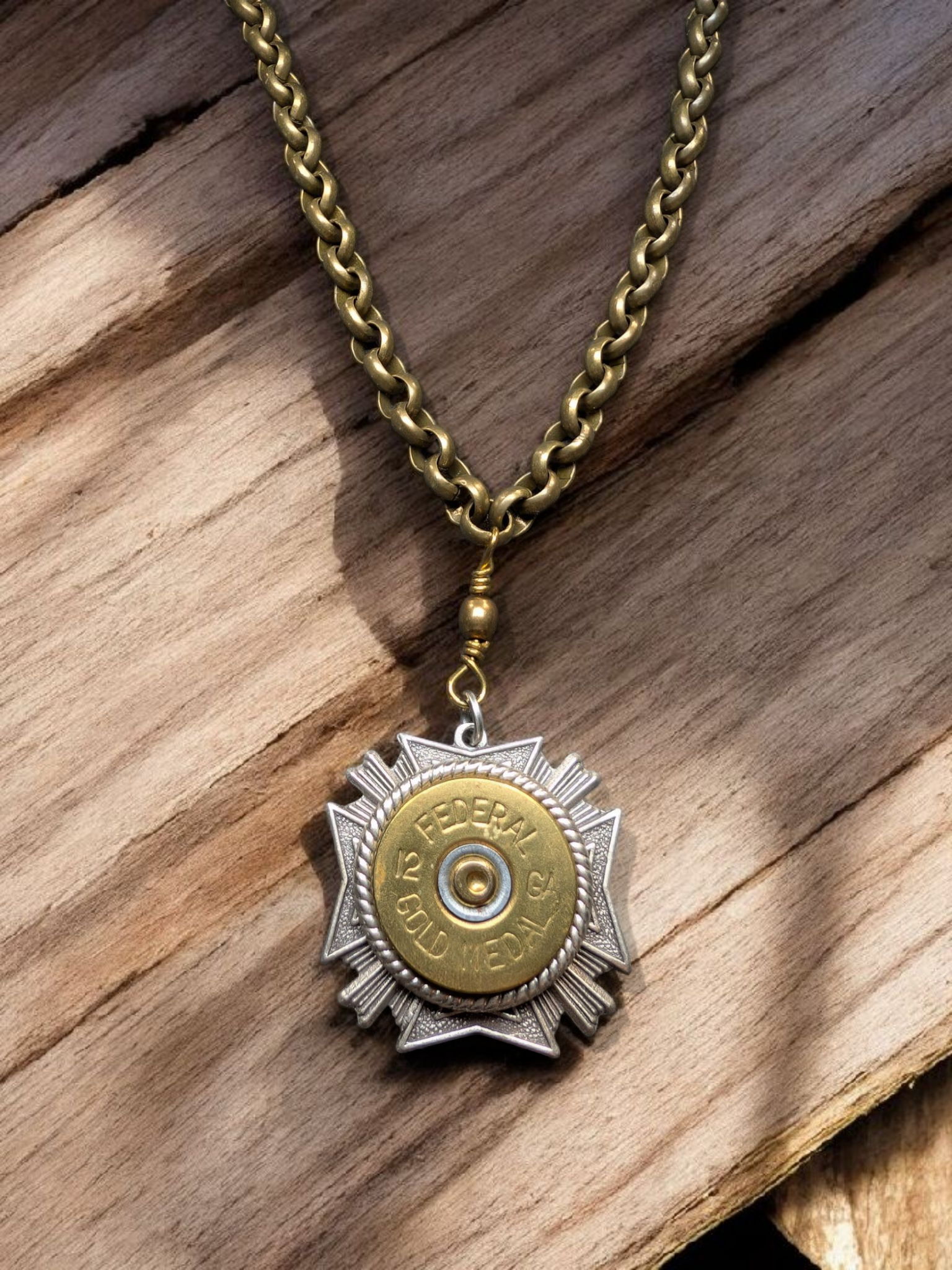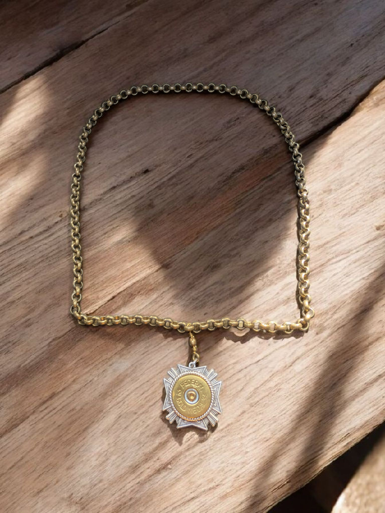 Statement 12g madallion necklace, with a stunning medal chain.