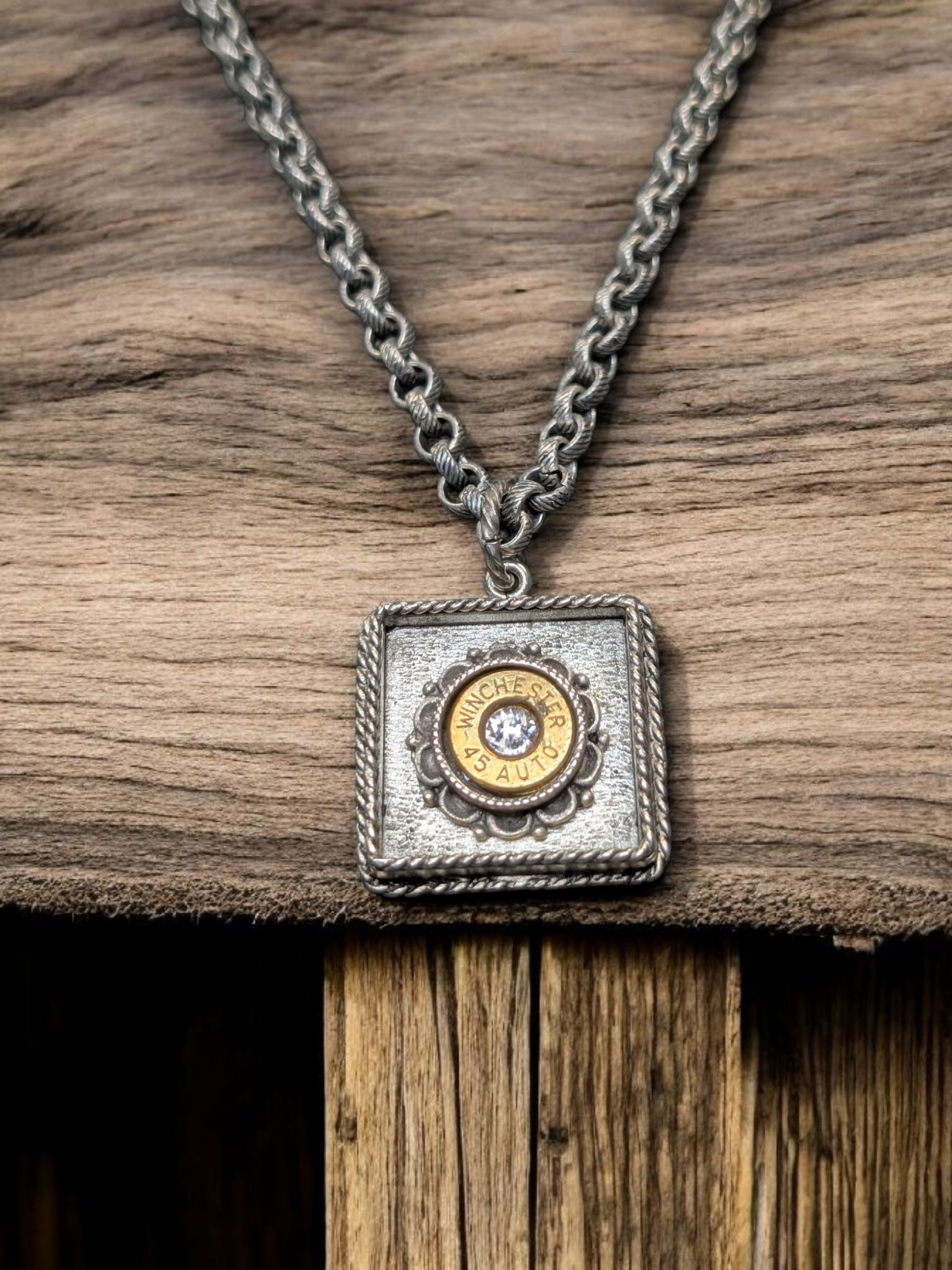 45g square medallion handmade with Swarovski crystal. With beautifully crafted chain. One of one.