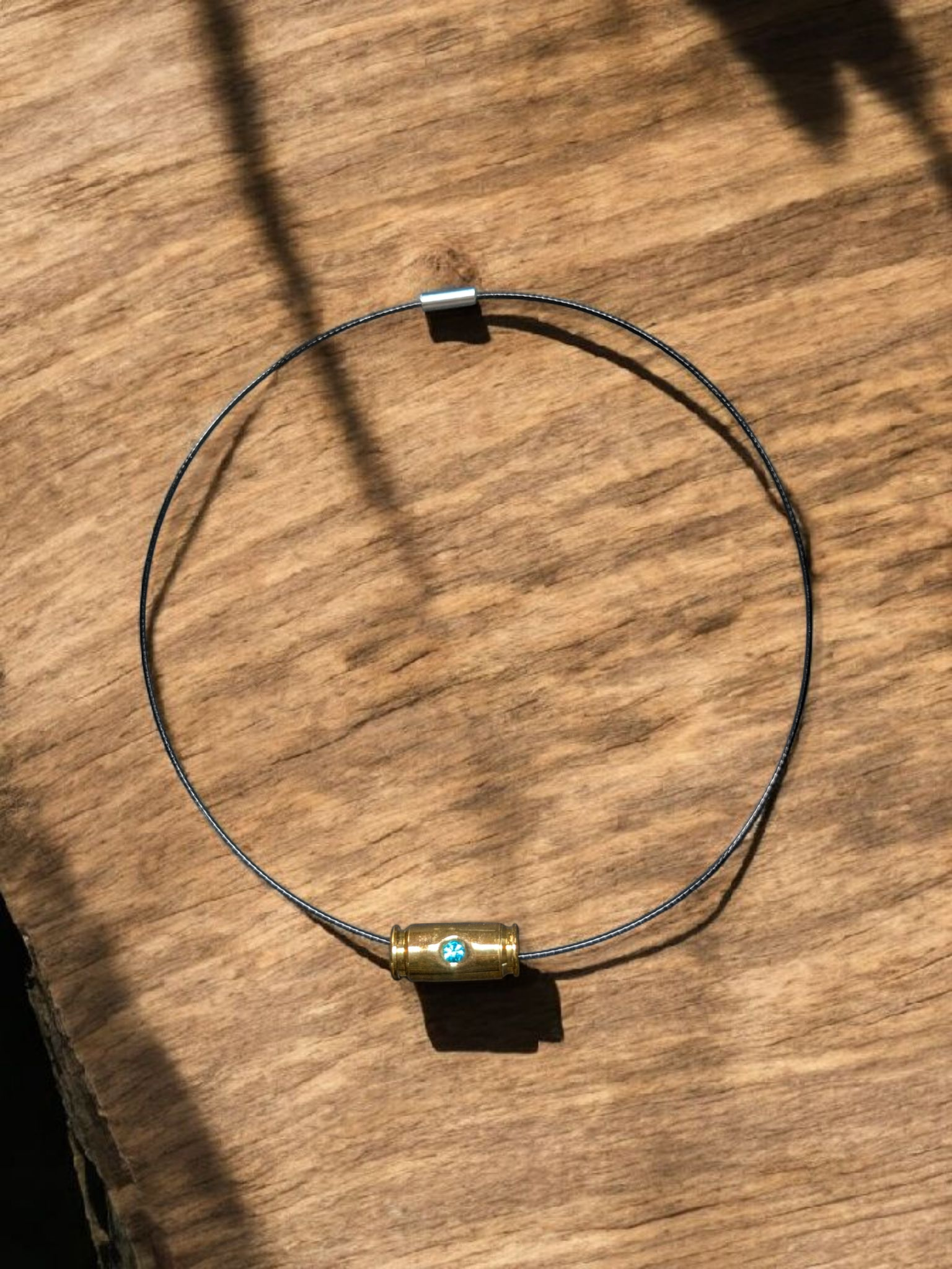 Beautiful and minimal whole casing chocker necklace. With Swarovski crystal, your choice of blue or red.
